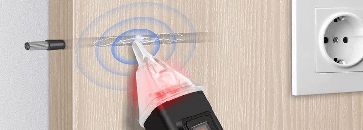 Ao entrar em contato ou proximidades de uma tomada, régua de terminais ou cabos de alimentação onde tenha a presença de tensão, a ponta do detector ficará vermelha e emitira um alarme.